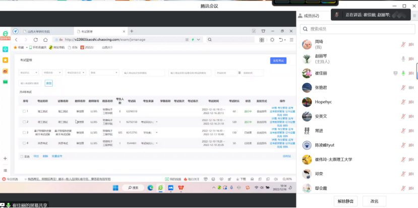 根据学校总体工作安排,本学期末结课、重修考试采取线上方式进行。为帮助老师们熟悉平台操作流程、更好地参与到结课、重修考试工作中,2022年12月16日19:00,生物医学工程学院召开线上会议,对本学期结课考试进行安排。