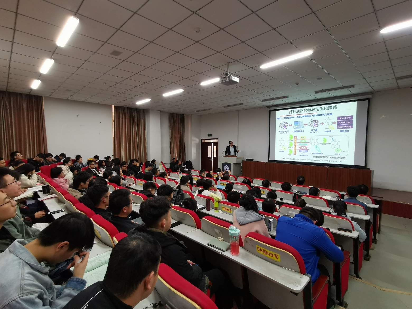 报告结束后,相关专业师生与葛广波教授就酶抑制剂类药物的发展方向、酶探针底物的设计及天然产物中存在的高效酶抑制剂等问题进行了深入的交流和讨论。