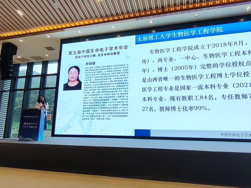 生物医学工程学院生物医学精准监测与仪器研究所李晓春教授团队参加了此次会议。会议期间,李晓春教授被聘为中国电子学会生命电子学分会第八届委员会成员;在“微流控芯片与POCT专题论坛”作题为《基于盘片式芯片的高灵敏度生物标志物检测技术》的特邀分会场报告;并受大会主席邀请参加优秀海报评选活动。此外,研究所张校亮副教授、孟雪娟副教授、张玲玲博士、李海琴博士及研究生袁琳、徐洪提交了会议论文并进行了海报展示。