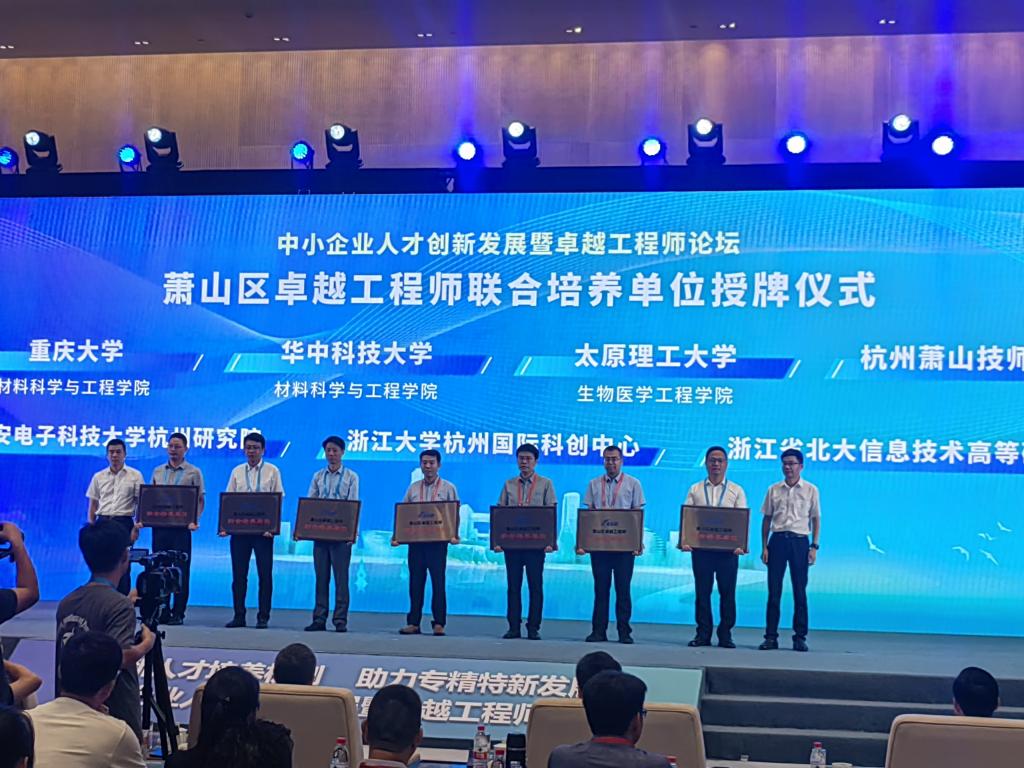 本届大会以“专精特新 蓄势聚力”为主题,大会期间,由工业和信息化部人才交流中心联合中国中小企业发展促进中心、浙江省经济和信息化厅、杭州市人民政府共同承办,杭州市萧山区人民政府等部门协办的大会平行论坛——中小企业人才创新发展暨卓越工程师论坛成功举行。论坛发布了《萧山区卓越工程师培育工作实施办法(试行)》,会上启动了“萧山区卓越工程师培育基地”建设,并为我校生物医学工程学院进行了“萧山区卓越工程师联合培养单位”授牌。