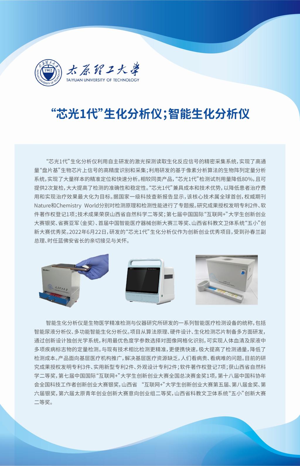 第二届高等学校科技创新大会于10月12日,在山东青岛举办。我校生物医学工程学院生物医学精准检测与仪器研究所李晓春教授团队研发的《“芯光1代”生化分析仪》和《智能生化分析仪》入选“第二届高等学校科技创新大会”并进行现场展示。该项目围绕智能医疗器械研发和产业领域存在的问题开展研究,做出具有新颖性、可行性和实用价值的参展作品,旨在更好地满足人民群众对高质量、高水平医疗器械的需求。