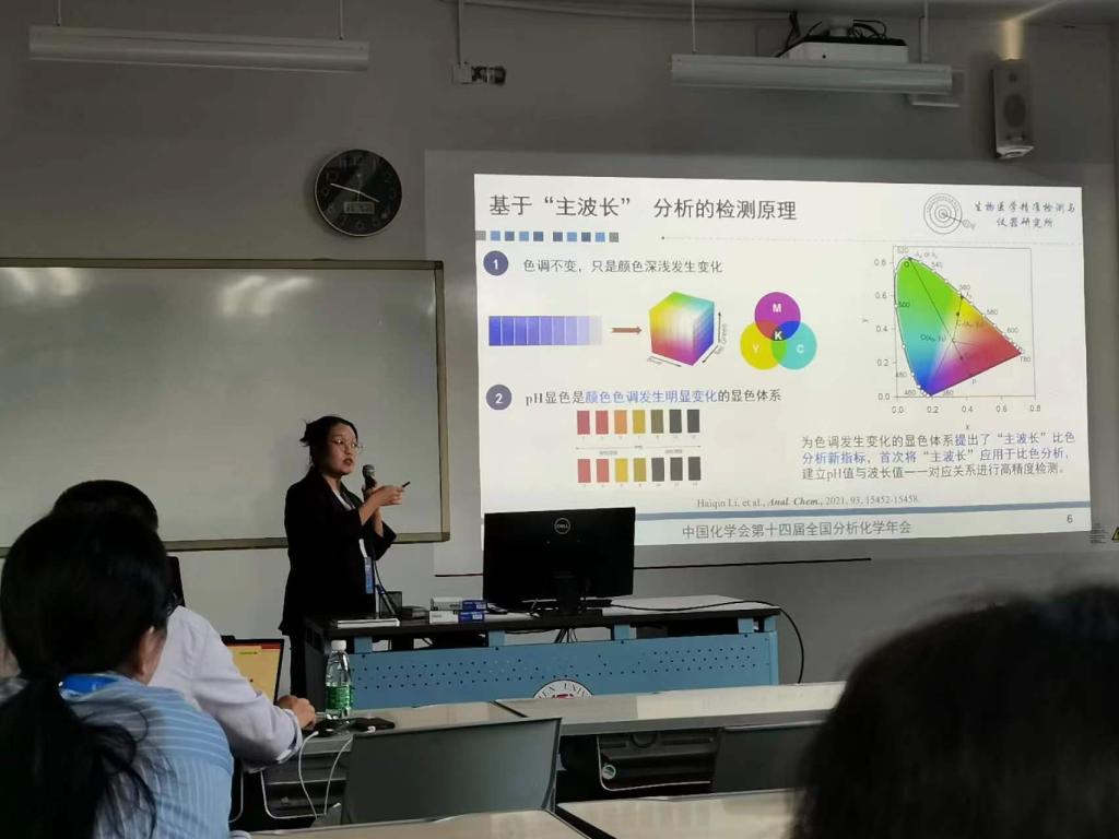 会议期间,李晓春作了题为《基于智能设备的生化分子检测技术与仪器》的报告,张校亮作了题为《基于激光背向散射干涉的水中重金属和抗生素定量检测》的报告,张玲玲作了题为《比色生物芯片-体液中多种毒品的可视化定量检测》的报告,李海琴作了题为《基于智能手机主波长分析结合商业试纸的pH值高精度测定》的报告。大家就新技术、新方法、新仪器等内容展开交流、分享经验,促进了学术合作,激发了创新潜力。