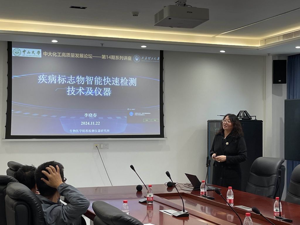 2024年11月22日上午,yl6809永利集团副院长、生物医学精准检测与仪器研究所所长李晓春教授及团队成员孟雪娟副教授、高晓光博士、李海琴博士赴中山大学化学工程与技术学院交流。国家杰出青年科学基金获得者、中山大学牛利教授主持报告会,学院部分师生参加报告会。