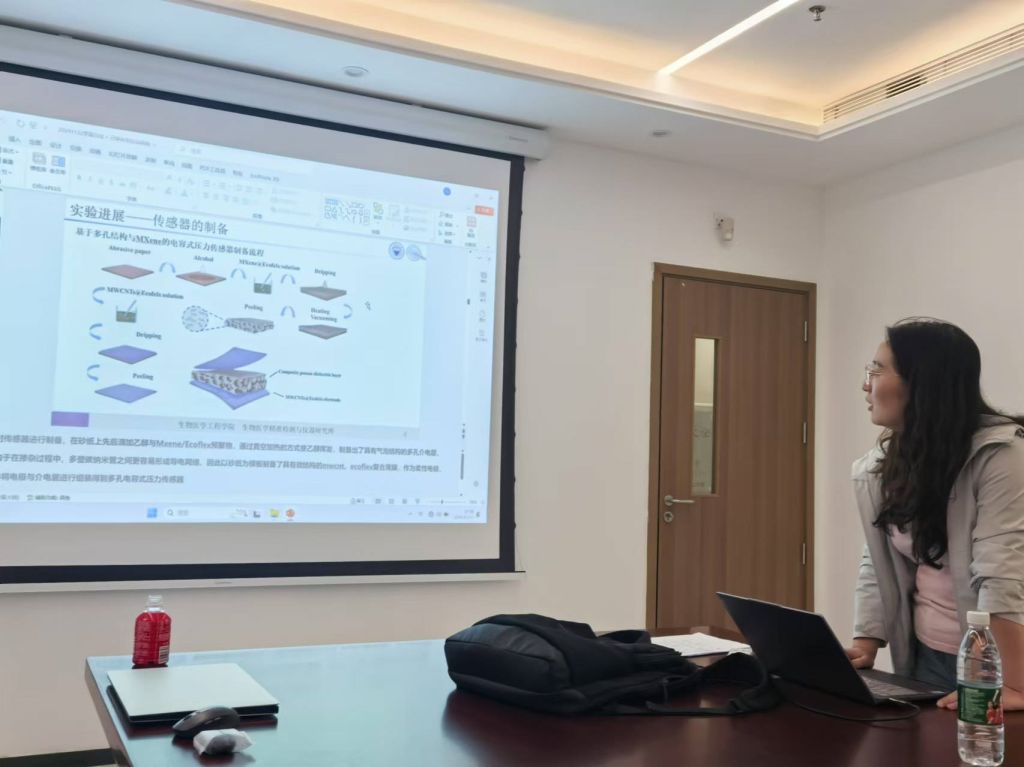 2024年11月22日下午,孟雪娟副教授和青年教师高晓光博士分别作了题为《柔性可穿戴传感器在无声语音接口中的制备及应用》和《基于二维材料的柔性电子器件及其生物医学应用》的口头报告。双方进行了细致讨论,并明确进一步合作事宜。