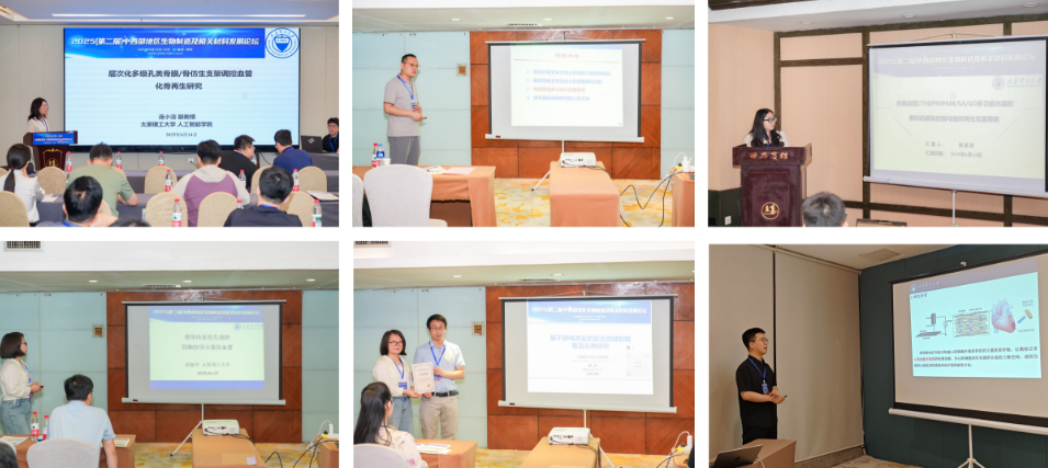 我校多位师生参加了此次论坛并做报告,汇报了骨组织生物打印、小直径血管制造、高分辨打印等方面的研究进展。其中连小洁作了题为《层次化多级孔类骨膜/骨仿生支架调控血管化骨再生机理研究》的报告;魏延作了题为《基于静电喷雾的复合微球的制备及应用研究》的报告;赵丽琴作了题为《诱导内皮化生成的同轴打印小直径血管》的报告;梁紫微作了题为《光响应型***@*****/SA/GO多功能水凝胶敷料的感染控制与组织再生双重策略》的报告;雷奇担任了主题分论坛主持人,并作报告《微纳纤维导电心肌支架静电打印及其功能研究》;博士研究生贾金桥作了报告《纳米形貌修饰的熔融静电打印纤维支架促进心肌细胞协同收缩》。
