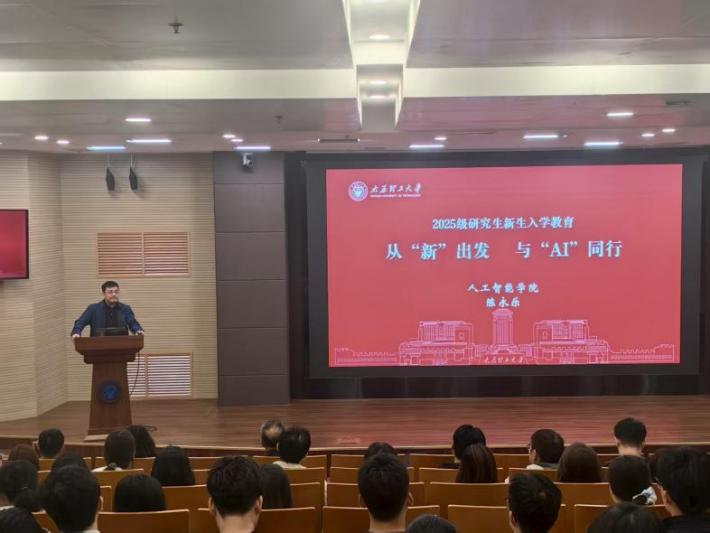 院长陈永乐作题为“从‘新’出发,与‘AI’同行”的专题报告,系统介绍人工智能领域的前沿动态和学院在各方向的学科优势与平台资源,鼓励新生积极融入科研氛围,拓展跨学科视野,成长为创新型、实践型高层次人才。