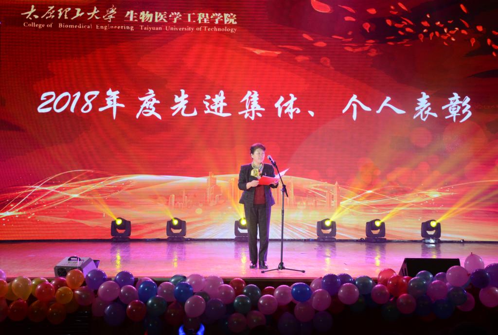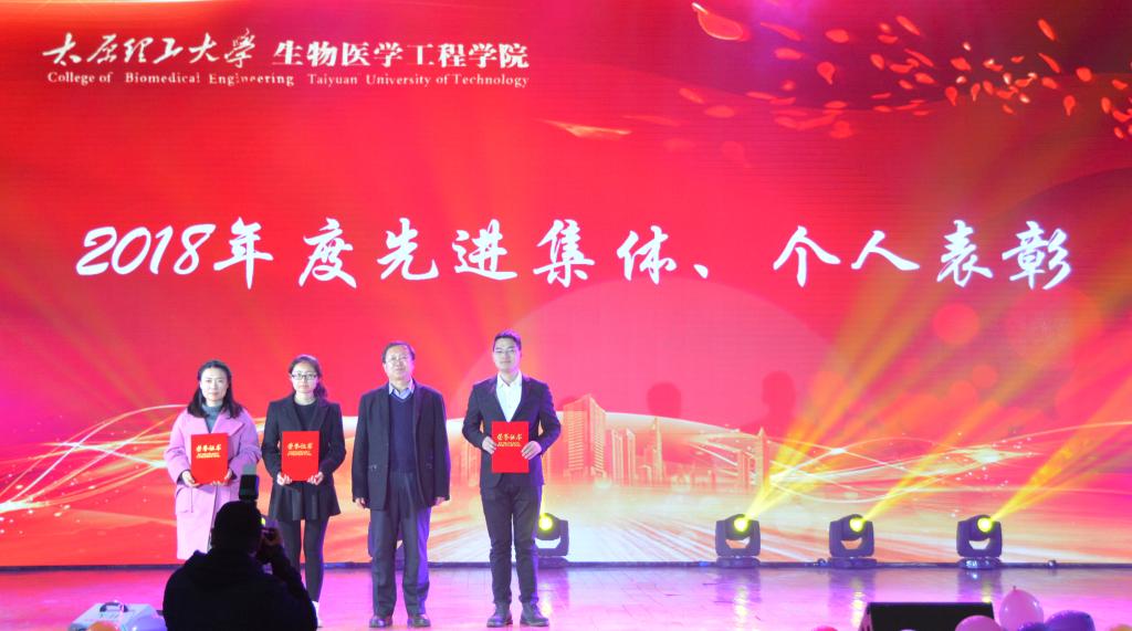 晚会上,李云云为学院设立的生物医学材料与康复辅具创新设计和制药工程创新创业实践两个大学生创新创业基地授牌。贾月梅宣读了2018年度生物医学工程学院先进集体及优秀个人表彰决定,韩志军等院领导为他们颁奖,希望获奖的集体和个人再接再厉,继续发挥表率作用,助力学院各项工作上新台阶、铸新辉煌。