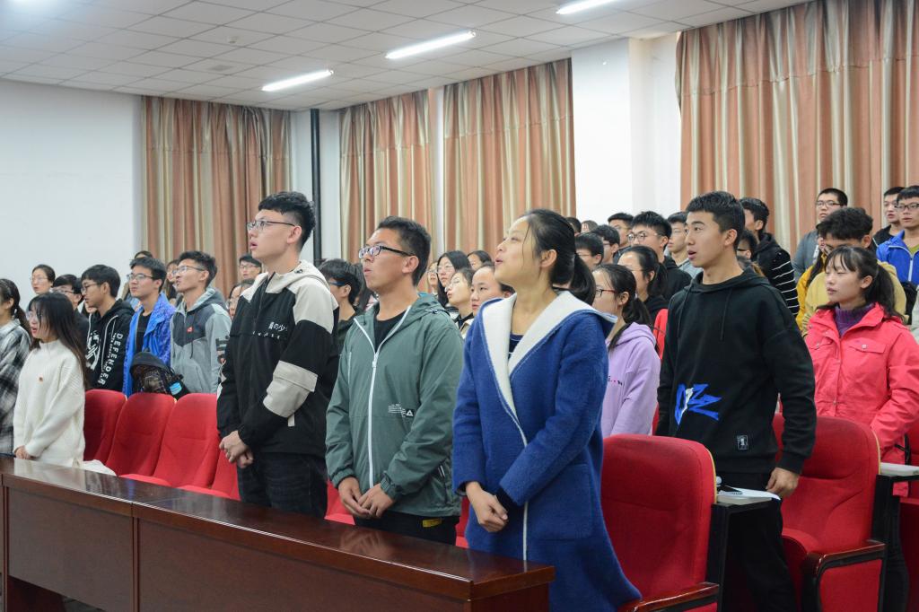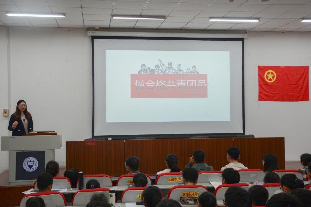 在振奋人心的团歌声中,开班仪式拉开了帷幕。李昱霞讲话指出,希望青年学生把握学习团课的宝贵机会,增强自身本领,自觉承担团员使命。团委组织部向大家宣读了团课的纪律,并对考核模式和学习内容进行了说明。杨雪芬带领大家重温团的历史,指明新时代合格团员应不忘初心,牢记使命,用习近平新时代中国特色社会主义思想武装头脑,指导实践,当好中国共产党的助手和后备军。应认真学习党的创新理论,增强“四个意识”、坚定“四个自信”,坚决维护以习近平同志为核心的党中央权威和集中统一领导,始终做到不忘初心跟党走。