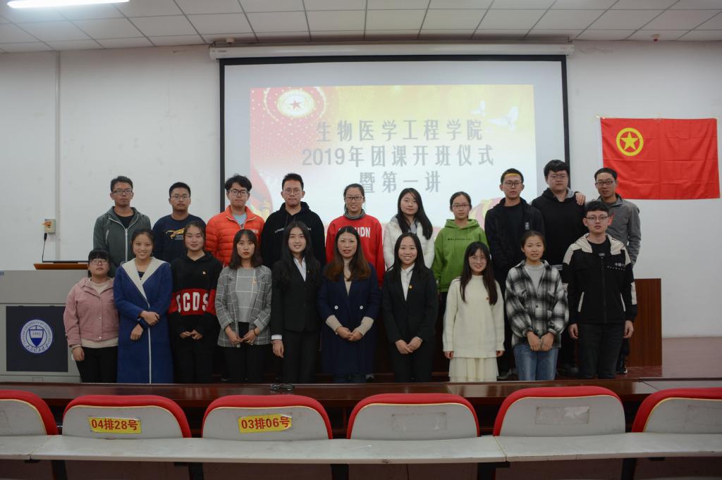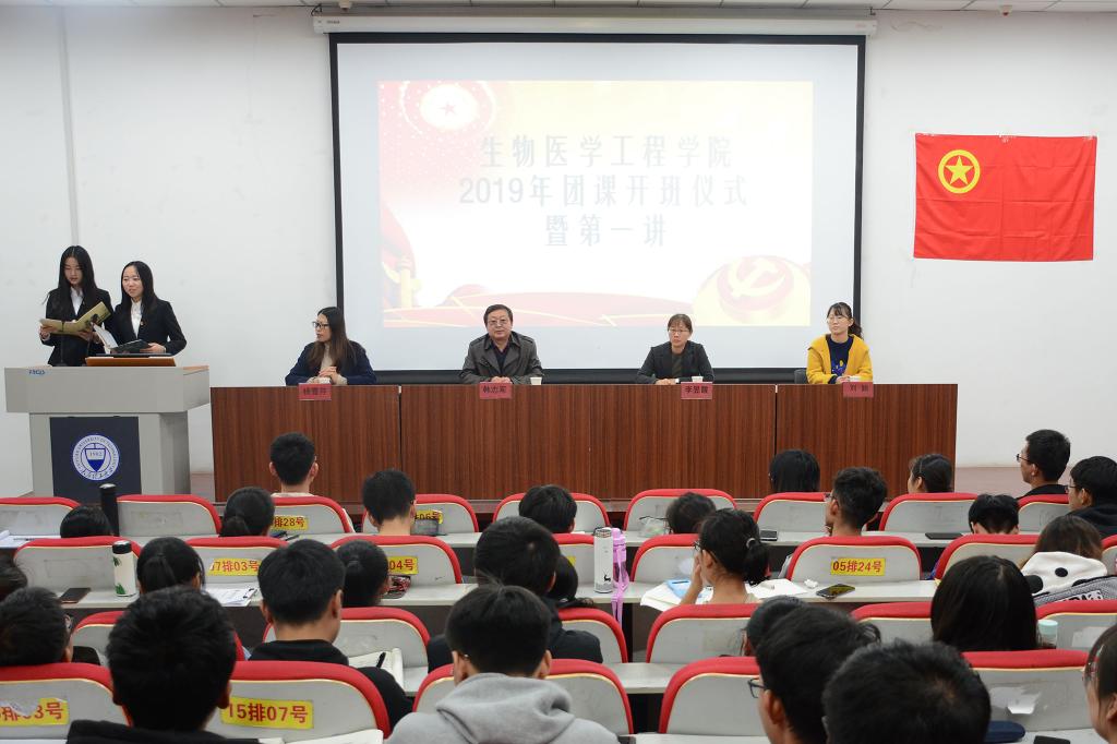 11月6日中午11时30分,生物医学工程学院2019年团课开班仪式暨团课第一讲在学院一楼报告厅举行。院党总支书记韩志军、院党总支副书记李昱霞、院团委书记杨雪芬、辅导员刘颖出席了此次仪式。