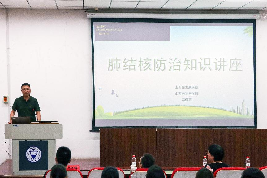 2023年团中央青年志愿者行动指导中心与国家疾病预防控制局传染病防控司联合开展“防治结核,志愿有我”全国大学生志愿宣讲团遴选活动,我院旭日志愿宣讲团成功入选。为使我院学生进一步了解肺结核疾病知识,更好开展“防治结核 志愿有我”志愿宣讲活动,传播健康知识,助力健康中国,2023年6月26日下午3点,生物医学工程学院于一层报告厅开展防治结核,志愿有我——肺结核防治知识培训活动,讲座由山西白求恩医院感染性疾病科副主任医师常蕴青主讲,生物医学工程学院党委书记吕晓勇、生物医学与制药实验中心副主任魏延、辅导员史志程、生物医学工程学院校友理事、生物医学工程专业2021届毕业生许浩、旭日志愿宣讲团成员及研究生代表。