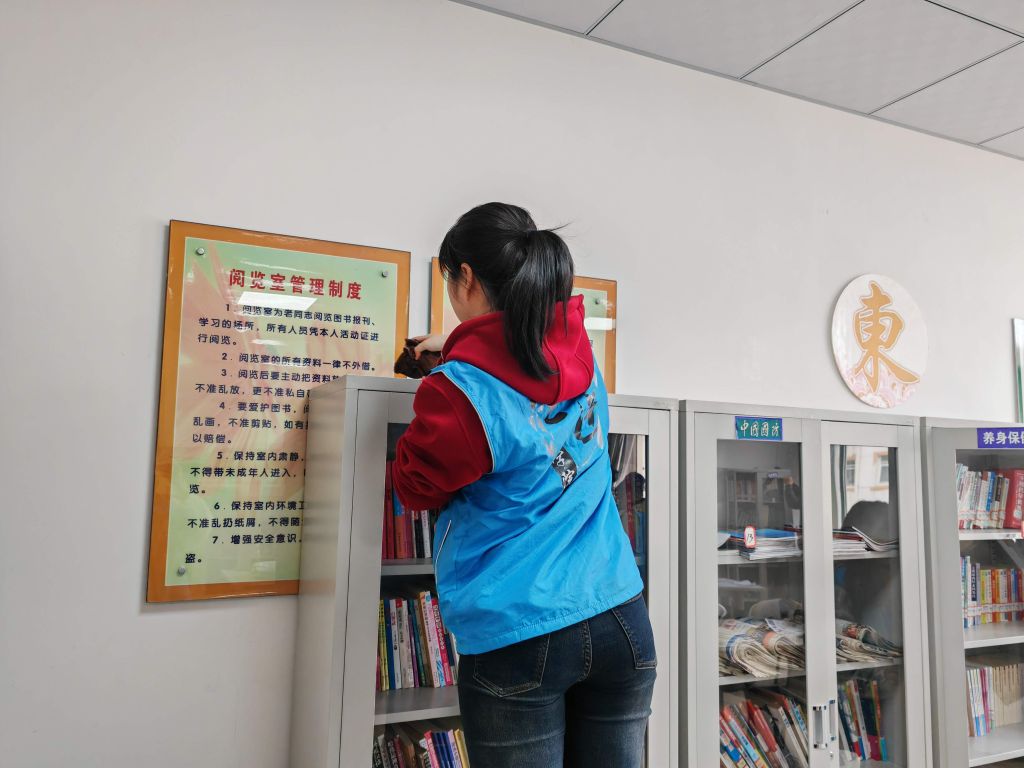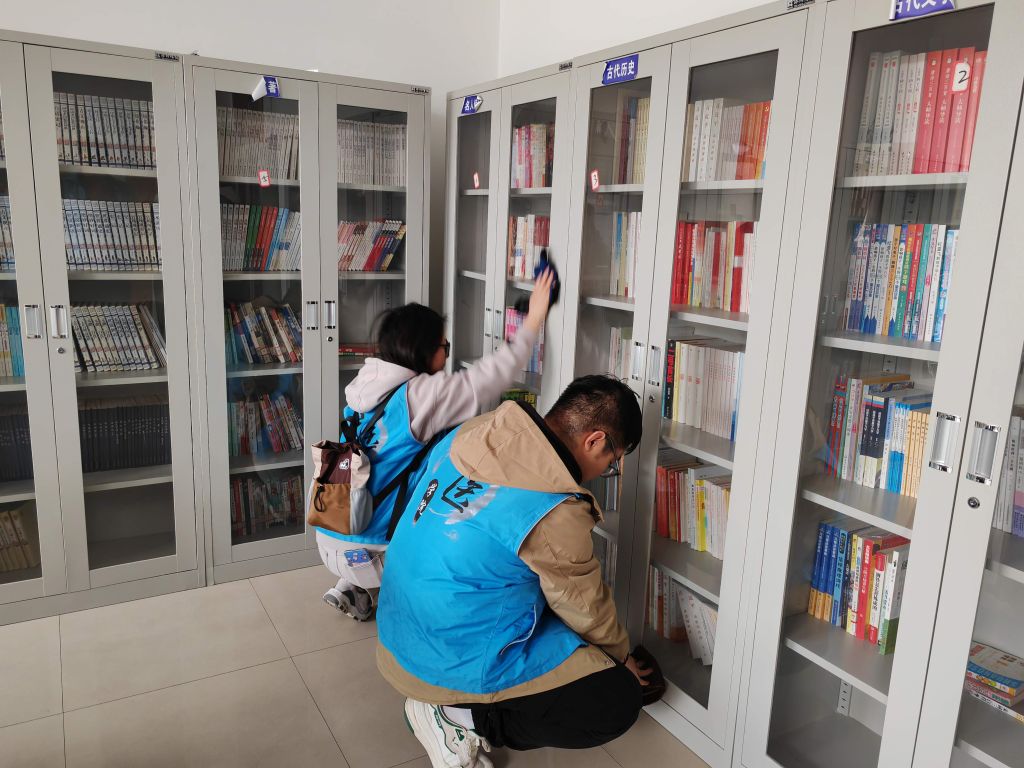 志愿者们积极打扫图书室和娱乐室,仔细清扫了地面和书架,擦拭窗台和桌面,致力于为社区提供一个更加舒适、整洁的环境。