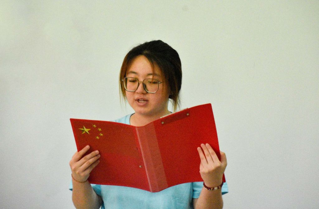 实践队员代表张佳琦结合去年前往新盛泉村亲身参与社会实践的活动感悟,号召同学们勇于担当重任,无私奉献自己的青春和热血,以饱满的热情、坚定的信念、扎实的行动,投身到社会实践活动中,为乡村振兴贡献青春力量。