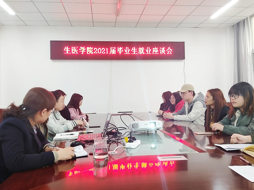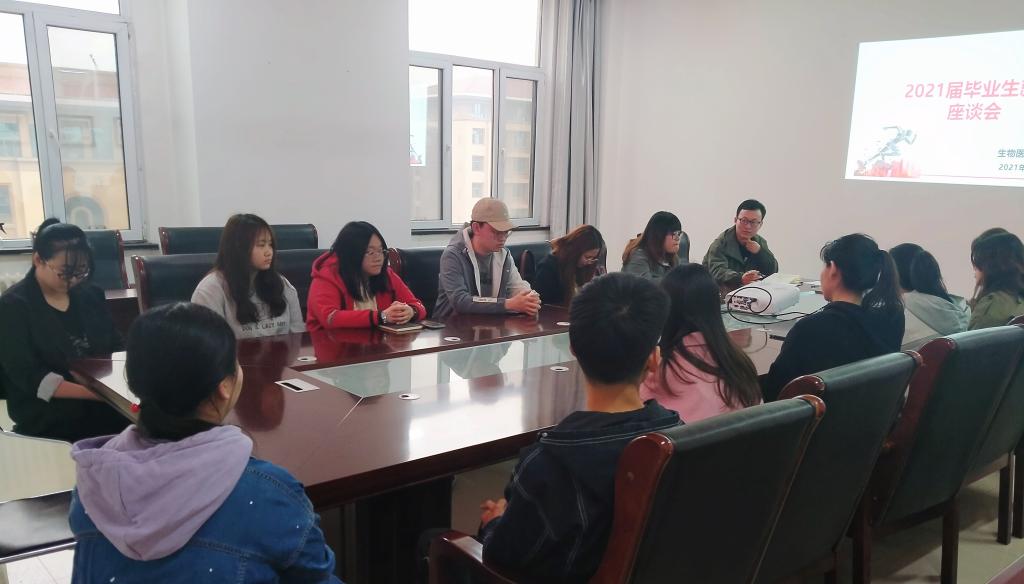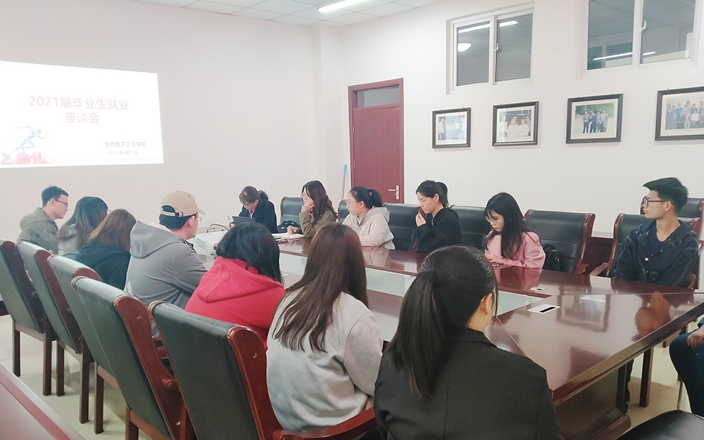 2021年4月1日下午2点半,生物医学工程学院在学院408会议室召开2021届毕业生座谈会。本次会议主要是为了解毕业生就业过程中遇到的问题、困难,学院在此基础上对就业困难学生进行精准帮扶。院党委副书记李昱霞、就业专员刘颖、毕业班辅导员杨晨鹏和毕业生代表参加了座谈会。会议由本科毕业生辅导员杨晨鹏主持。