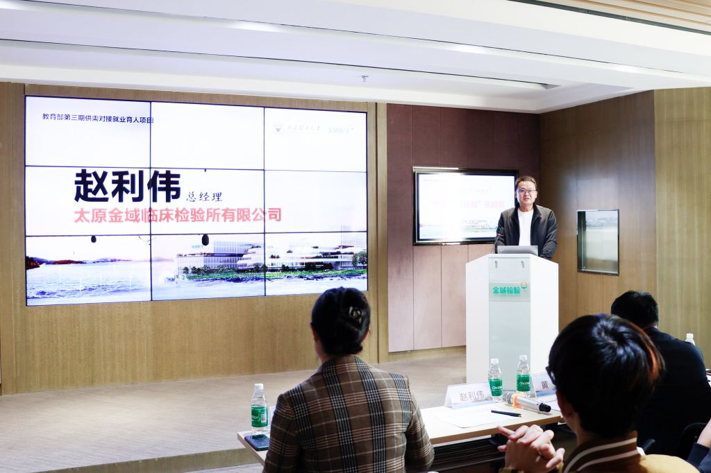 为深入贯彻落实党中央、国务院“稳就业”“保就业”决策部署,推动就业与培养有机联动、人才供需有效对接,2024年10月25日,yl6809永利集团与太原金域临床检验所有限公司联合开展“医疗育英计划”实践营并举行“就业育人实践基地”挂牌仪式。太原金域总经理赵利伟、人力行政部总监李敏、行政经理冀恺迪、实验诊断部运营主管吴佳丽、实验诊断部质量主管续静、yl6809永利集团副院长黄棣、专业教师王龙飞、张校亮、就业专员孙娅晴、辅导员晋朝阳、2022级生物医学工程专业本科生共同参加活动及挂牌仪式。