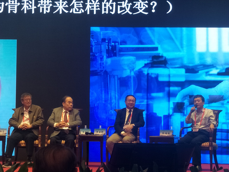 主题会议上,针对“骨科创新与智造,究竟是未来已来还是未来未来?”这个话题,本次大会特别安排了尖峰问答环节,邀请到了骨科临床专家、科学家、制造工程师,共同探讨“创新与智造”对未来骨科会带来怎么的影响与推动,以及背后存在的担忧与思考。我院陈维毅教授围绕科技进步给骨科临床、相关基础研究和转化制造的影响,进行了简练、精辟的发言。