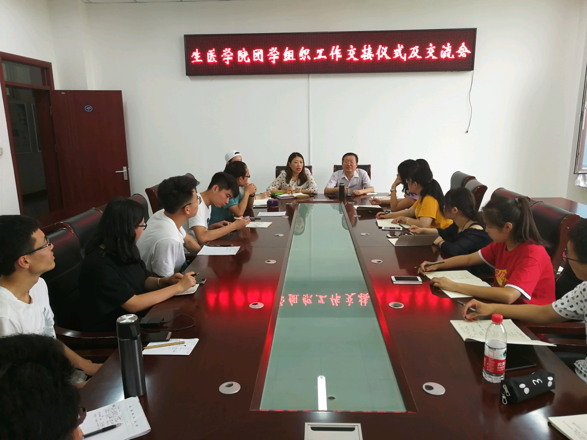 2019年6月19日中午12:40,生医学院举办团学组织工作交接仪式暨交流会,院党总支书记韩志军参加会议,会议由团委书记杨雪芬主持。