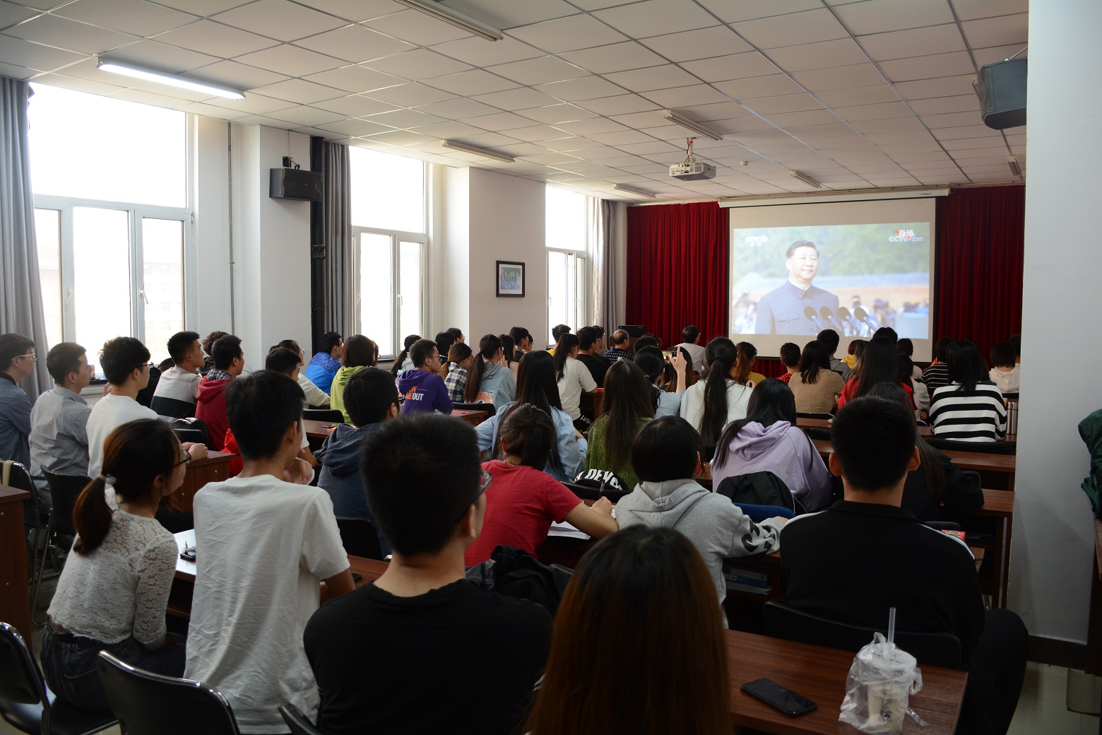 10月1日,中华人民共和国迎来了70周年华诞,我院党总支书记韩志军、党政办薛忠、辅导员刘颖、各年级留校学生和团学组织成员齐聚学院403室,共同观看了庆祝中华人民共和国成立70周年大会、阅兵式、群众游行和联欢活动直播。