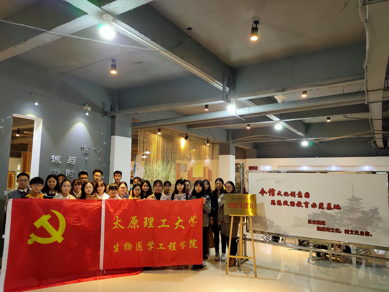 自第二批“不忘初心、牢记使命”主题教育开展以来,生医本科党支部始终坚持“守初心、担使命、找差距、抓落实”的总要求,扎实开展各项工作和系列主题活动。2019年11月7日,生医本科党支部师生党员在党支部书记杨雪芬的带领下来到了轻纺工程学院,在“今信文化创意园”思想政治教育示范基地开展了“感中华优秀文化,强党员文化自信”实践活动。