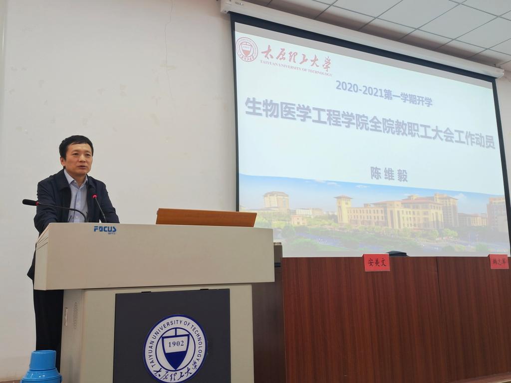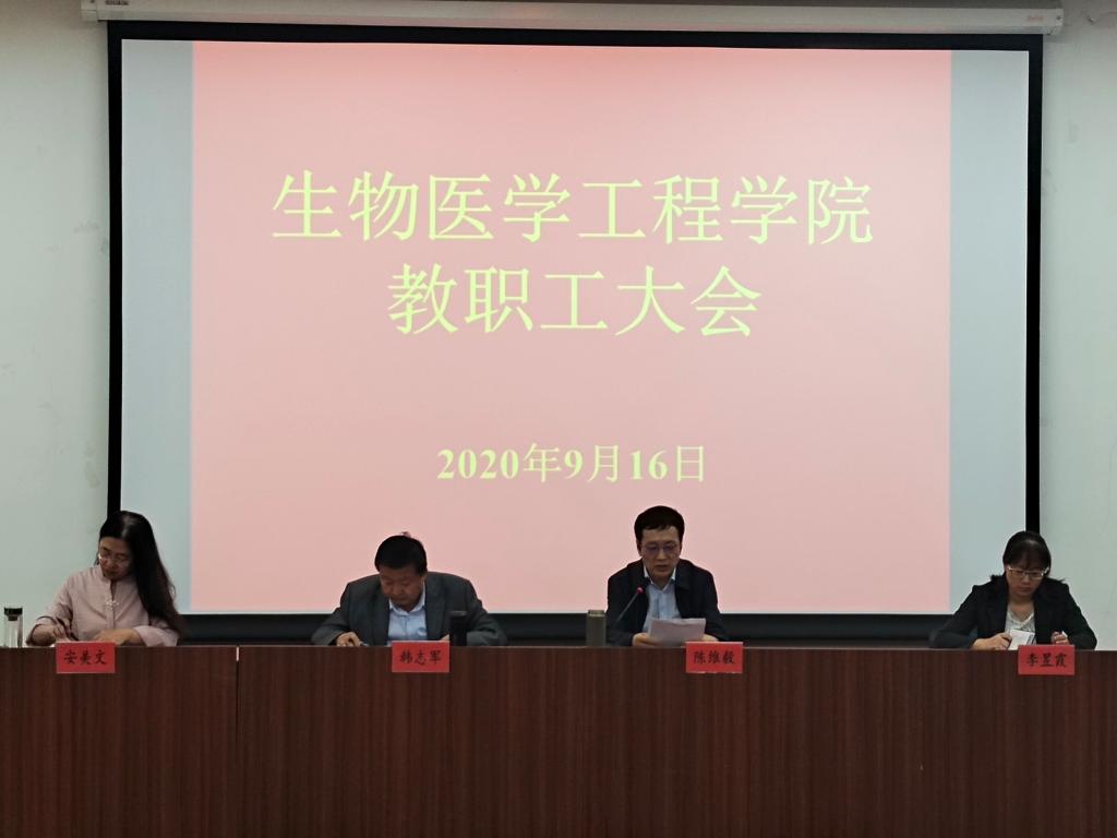 2020年9月16日下午,新学期学院教职工大会在院一层报告厅召开,全体教职工参会,院党委书记韩志军主持会议。