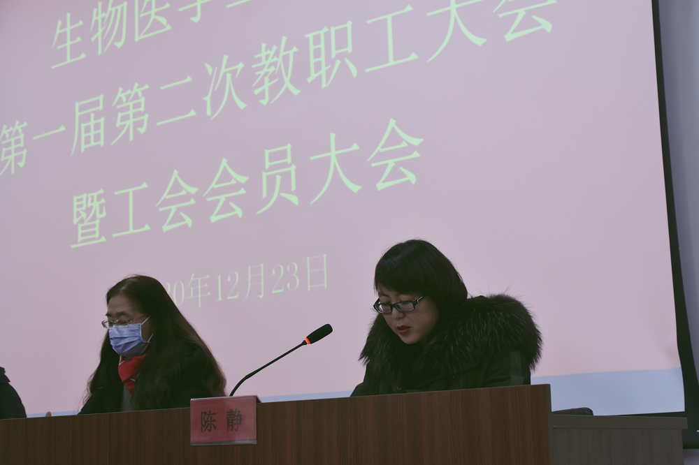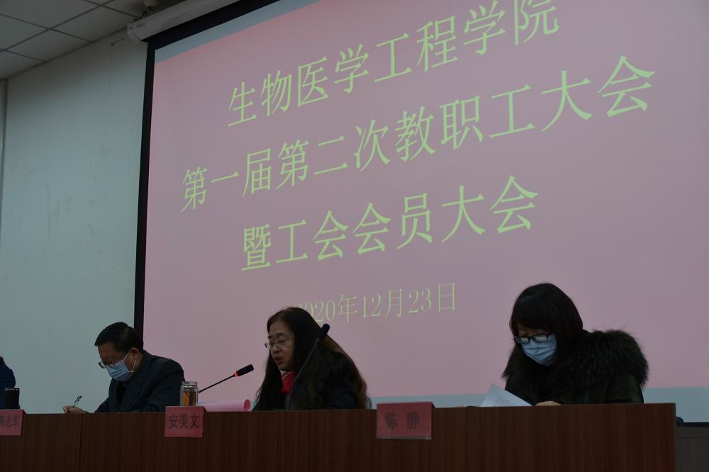 2020年12月23日,下午生物医学工程学院第一届第二次教职工大会暨工会会员大会在生物医学工程学院一层报告厅胜利召开。参加此次会议的有生物医学工程学院党委书记韩志军,生物医学工程学院副院长安美文,生物医学工程学院党委副书记李昱霞,生物医学工程学院工会主席陈静。大会由副书记李昱霞主持。