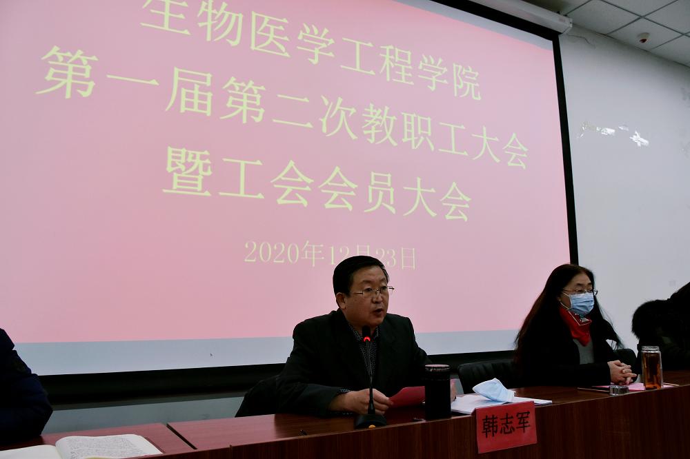 生物医学工程学院党委书记韩志军致开幕词并指出:本次大会旨在引领全体生医学院的教职工,忠诚党的事业,竭诚服务师生,坚持以学生为中心,落实立德树人根本任务,扎实推进“双一流”建设,充分发挥“双代会”桥梁纽带作用,团结动员凝聚广大教职工,为持续推进生医学院事业的改革、建设与发展做出新贡献。