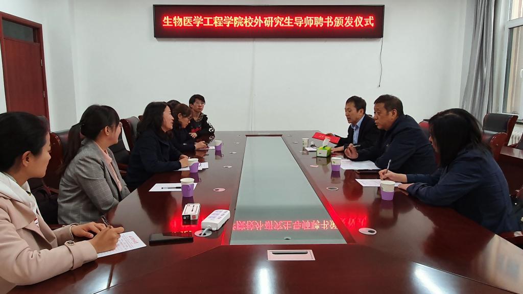 2021年4月25日下午,在学院408会议室举行了生物医学工程学院校外研究生导师聘书颁发仪式,陈维毅院长、李昱霞副书记、研究生导师代表李晓娜教授以及晋中市第一人民医院口腔科学术带头人柳新华教授及医生代表、部分研究生代表共同参加了该仪式。