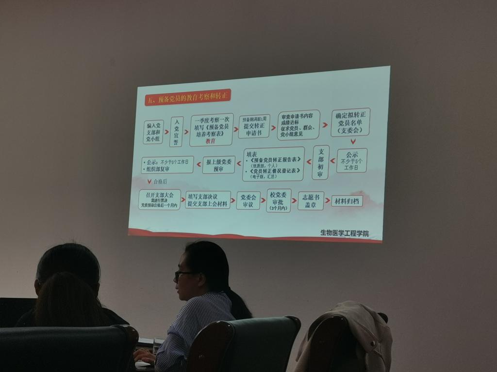 会上,专职组织员王玥就发展党员工作的具体流程及每个阶段应做什么、注意什么进行了详细讲解和培训。