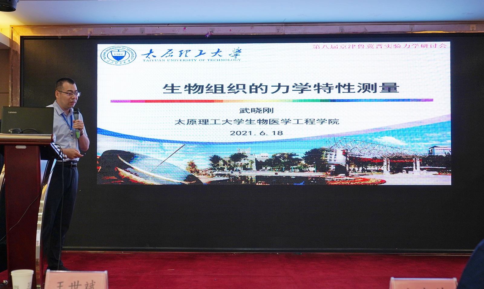 生物医学工程学院院长、山西省力学学会理事长陈维毅教授致欢迎词。研讨会期间,我院武晓刚教授做了“生物组织的力学特性测量”的大会特邀报告。