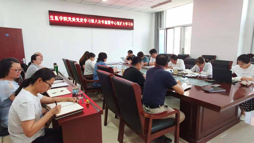 2021年6月22日上午,生物医学工程学院党委在院408会议室召开党史学习教育暨中心组(扩大)学习会。院党委韩志军书记、李昱霞副书记、工会主席、三办一委负责人,两系、两中心、研究所负责人,各党支部书记参加了专题学习会。院党委书记韩志军主持会议。