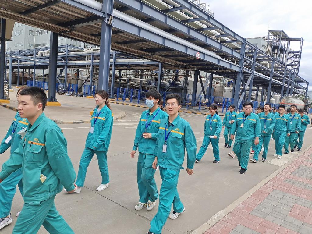 实习过程中,在企业相关领导的安排下,学生们有序进入质量检验部、技术中心、头孢无菌一车间、头孢原料一车间、青霉素原料车间、青霉素原料二车间、制剂车间、酶制剂车间、QC部门进行岗位跟班操作学习。车间主任与技术人员负责学生的实习监管与评价,带队老师不定时抽查学生的实习记录,通过提问引导,督促学生做好日常实习记录与定期总结。最后,在企业的组织下,学生们对各个车间进行了轮岗参观学习。通过以上流程,促进了学生对生产工艺、工艺设备、流程与控制、分区与环境、生产组织与管理的认知与理解,实现了知识的应用与新知识的形成。