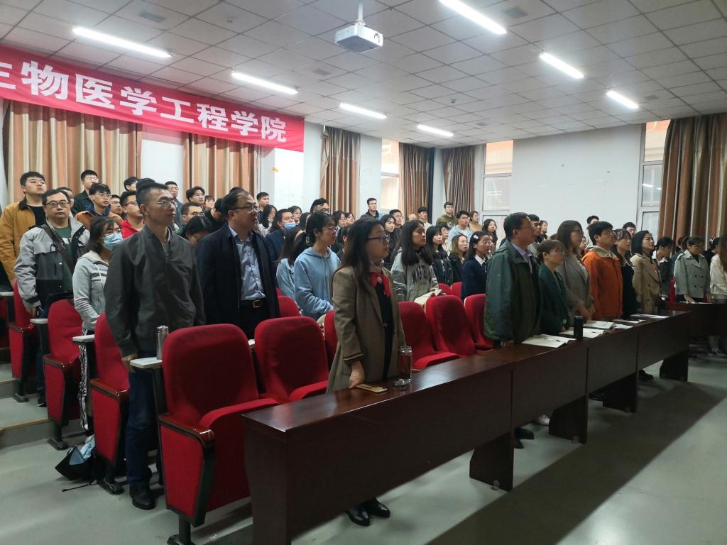 2021年10月9日上午,生物医学工程学院于一层报告厅集体观看纪念辛亥革命110周年大会实况转播,生医学院党委书记韩志军,副书记李昱霞,副院长安美文,三办一委,各系、研究所、实验中心负责人、全院教师、辅导员以及各学生党支部成员一同观看。