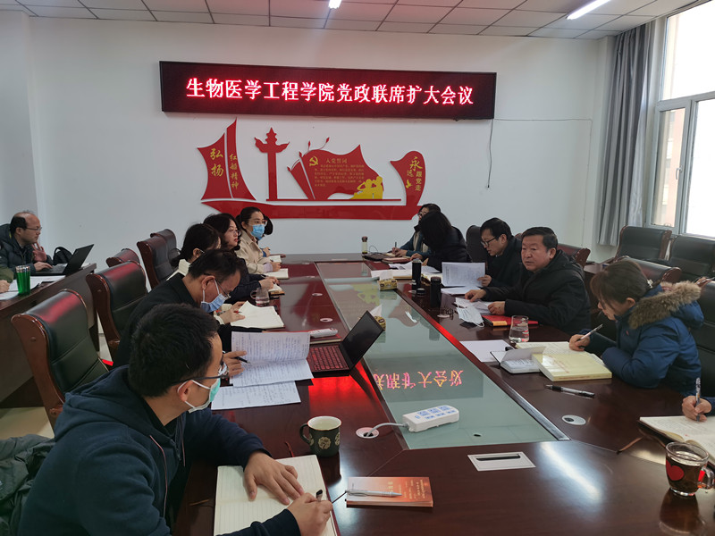 2022年3月1日上午,生物医学工程学院在院408会议室召开党政联席扩大会议。院党委书记韩志军、院长陈维毅、党委副书记李昱霞、副院长安美文、三办、系、所、中心负责人及各党支部书记参加了会议。韩志军书记主持会议。