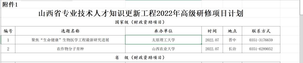 山西省人力资源与社会保障厅发布了《关于公布2022年高级研修项目计划的通知》(晋人社厅函〔2022〕482号)的文件,该文件公布了我省2022年度获批的2个国家级高级研修项目和44个省级高级研修项目。我校生物医学工程学院申报的“聚焦‘生命健康’生物医学工程交叉最新研究进展 ”项目在有关单位申报推荐的基础上,经材料审核、专家评审、社会公示等多个环节成功入选国家级研修项目。
