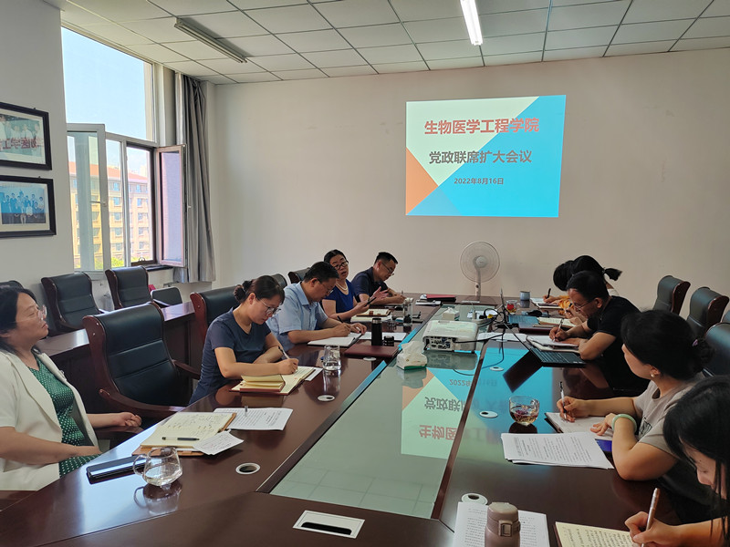 2022年8月16日,学院在408会议室召开生物医学工程学院2022秋季新学期工作会议。院党委书记韩志军、院长安美文、院党委副书记李昱霞、副院长黄棣、副院长李晓春、院工会主席、三办、两系、两所、实验中心负责人及各党支部负责人、专职组织员参加了会议。会议由韩志军、安美文主持。