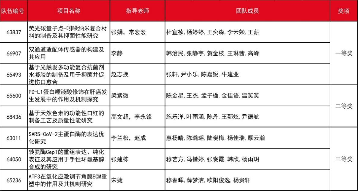 全国大学生生命科学竞赛是中国高等教育学会发布的“全国普通高校大学生竞赛榜单”赛事之一,2022年8月24日全国大学生生命科学决赛圆满结束。生医学院共有16支队伍参赛,经过网络评选、省级复赛、决赛,共有14支队伍获奖,8支队伍晋级全国决赛,最终斩获国家级一等奖3项,二等奖2项,三等奖3项,省级优秀组织奖,创我校最佳成绩,获奖比例和获奖数量再创新高,实现省内高校首位,再现了思政引领,理论指导实践,以赛促学的生动局面。