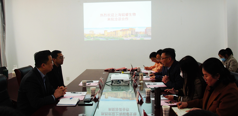 2023年3月23日上午,上海韬睿生物科技有限公司创始人兼首席执行官马旭东等一行莅临我院开展校企合作洽谈。院党委书记吕晓勇、院长安美文教授、副院长黄棣教授、副院长李晓春教授、生物材料团队成员等出席了会议,会议由党委书记吕晓勇主持。