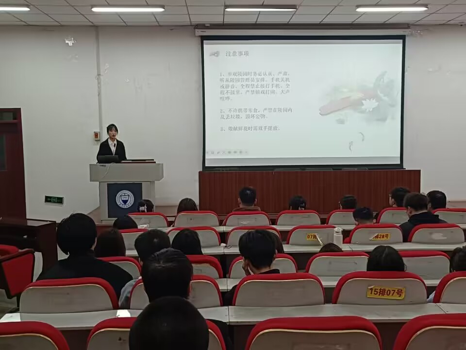 活动前一晚,全体成员在生物医学工程学院报告厅进行了清明祭扫预备会议。会上,赵雯轩同学为大家介绍了本次活动的活动流程以及注意事项,赵硕同学为大家讲解了牛驼寨的历史沿革以及徐向前、高君宇等老一辈无产阶级革命家的英雄故事与感人事迹,带领大家感受先辈们的革命英雄主义精神和坚定信仰。