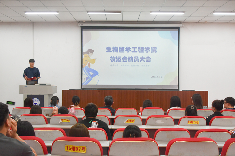 2023年5月15日中午12点30分,生物医学工程学院校运动会动员大会于学院一层报告厅召开,生物医学工程学院党委书记吕晓勇、辅导员刘颖和全体运动员出席了本次会议。