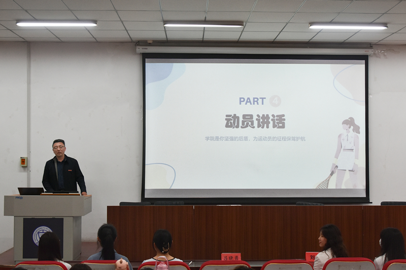 本次会议带领大家回顾了2021年运动会我院运动员所取得的成绩,详细分析了2023年校运会比赛项目。田启航作为运动员代表,从自身安全、比赛心态和训练收获等方面分享了自己的经验。吕晓勇从安全意识、竞赛精神、集体荣誉感等方面勉励运动员享受训练与比赛过程,感受竞技体育的魅力,同时特别强调安全的重要性,运动员们在赛场上要尊重裁判、尊重对手、尊重比赛,注意自我保护。