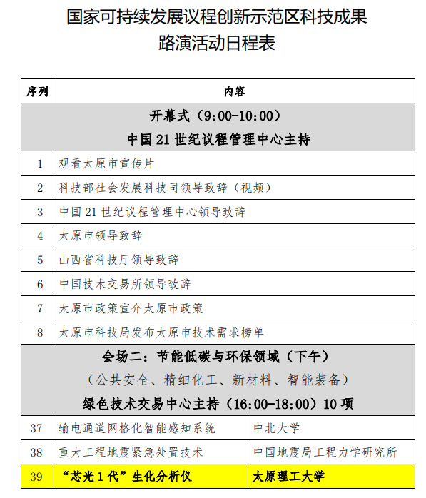 为充分发挥国家可持续发展议程创新示范区在绿色低碳技术产业化中的平台作用,促进国家科技成果转移转化和产学研深度融合,5月31日,由中国21世纪议程管理中心与太原市人民政府、中国技术交易所共同组织开展的国家可持续发展议程创新示范区科技成果的首场路演活动在太原举行。生物医学工程学院生物医学精准检测与仪器研究所研发的“芯光1代”生化分析仪入选此次科技成果路演名单,该项目的负责人为李晓春教授,青年教师张玲玲博士作为项目代表,进行了路演汇报。