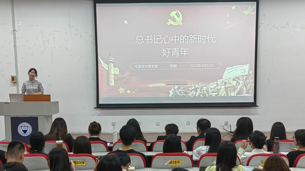 为深入开展学习贯彻习近平新时代中国特色社会主义思想主题教育,引导毕业生党员切实增强党性修养,鼓励毕业生党员在新的学习和工作岗位上奋发有为建新功。2023年6月12日晚19时,生医本科党支部书记刘颖于学院一层报告厅为毕业生党员送上本科阶段最后一堂党课,支部全体党员、发展对象和积极分子代表参会。