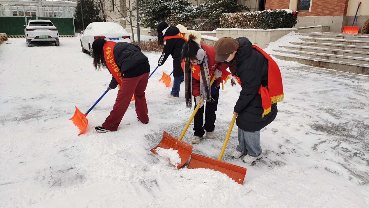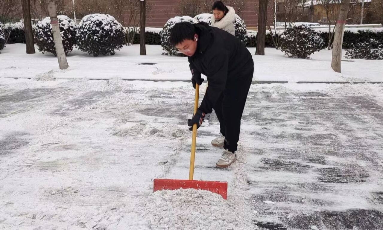 院党委副书记李昱霞、辅导员史志程同生医学子们一起扫雪除冰、通力协作,推、铲、扬、堆,各种方法齐上阵,热闹与忙碌驱散了深冬的凛冽与严寒,为全校师生开辟一条条洋溢着暖暖温情的方便之路。