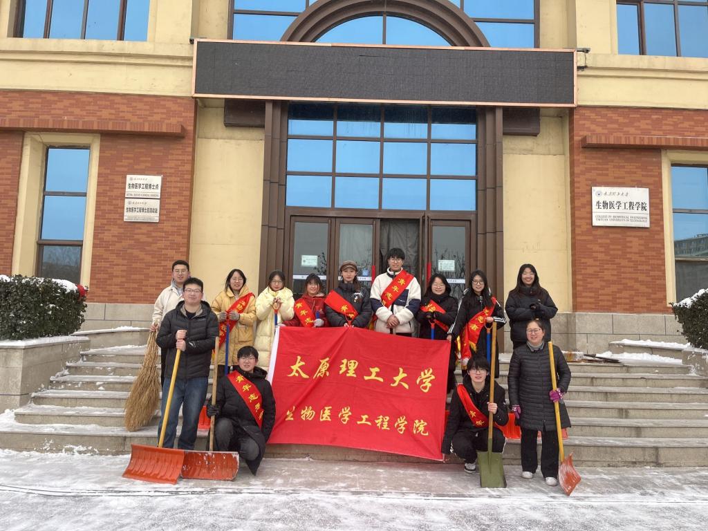 晨起所见,便是冬日胜景,薄阳初东升,太理美如画。突如其来的大雪为校园增添银装素裹美景的同时,也带来了极大的安全隐患。2023年12月14-15日,为保障师生交通安全和教学工作正常进行,生物医学工程学院党支部和团学组织积极响应学生工作部和校团委的号召,迅速组织旭日志愿服务队开展了为期两天的“扫雪除冰保出行”志愿服务活动。