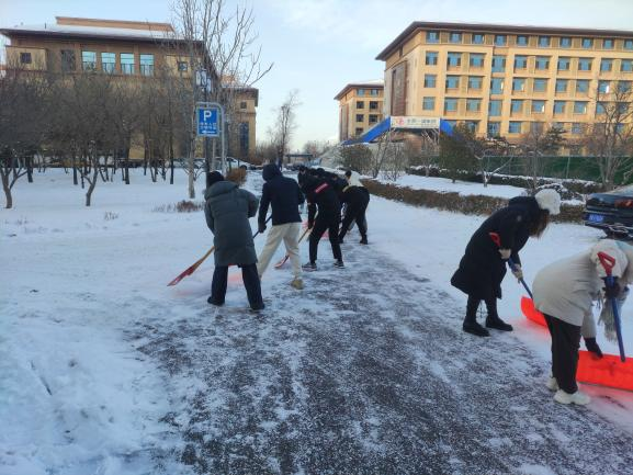 在寒风凛冽的天气中,同志们热情高涨,积极参与。他们领取清扫工具后,有序展开清理道路积雪的工作。尽管车辆碾压、行人踩踏、气温骤降给积雪清理带来不小的清扫难度,但是大家不畏严寒,团结协作,成为校园里一道亮丽的风景线。