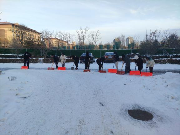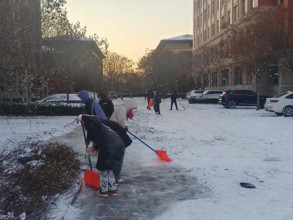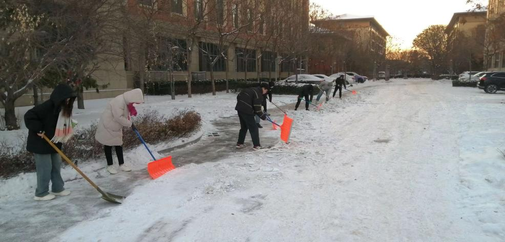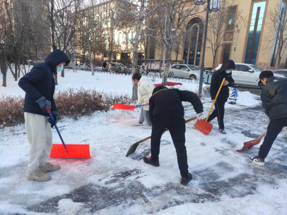 同志们充分发挥生医第一研究生党支部党员堡垒的示范带头作用,争当清扫积雪的“排头兵”。尽管大家的手和脸都冻得通红,但依然拿着铁锹奋力铲冰清雪,期间不时传来欢声笑语。同志们充分展现了青年学子不怕苦、不怕累的顽强精神,冲在前、战严寒、斗冰雪,且乐在其中,很快就为学院清理出一条干净、整洁的出入通道。