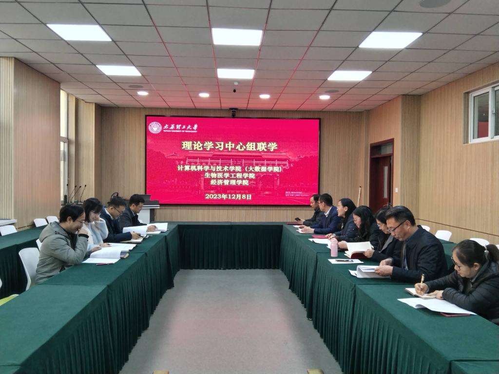 12月8日,计算机科学与技术学院(大数据学院)、生物医学工程学院、经济管理学院在经济管理学院229会议室召开理论学习中心组“联组共学”会议,集体学习习近平总书记关于安全生产重要论述和重要指示、坚持和发展新时代“枫桥经验”综述,以及中共中央总书记、国家主席、中央军委主席习近平在中央金融工作会议上重要讲话。各学院理论学习中心组成员参加会议。