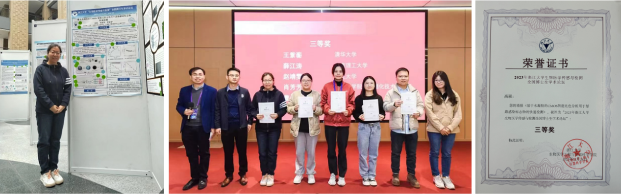 生物医学工程学院生物医学精准检测与仪器研究所李晓春教授团队的2020级博士研究生高颖参加了此次论坛,进行了题为《基于水凝胶的CMOS智能比色分析用于尿路感染标志物的快速检测》的墙报展示,并获得墙报展示三等奖。本次论坛中大家相互分享经验,拓宽学术视野,激发彼此的创新思维和学术灵感,在“求是创新”精神的引导下,在科研道路上砥砺前行。