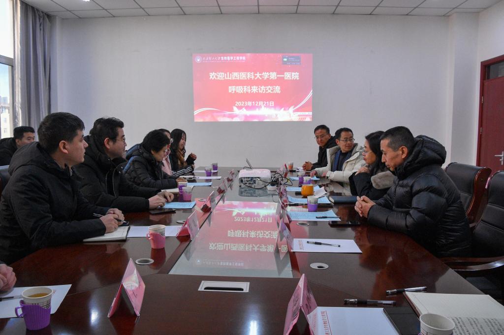 2023年12月21日山西医科大学第一医院呼吸与危重症医学科主任施熠炜一行来我院进行学术交流。教务处处长程永强、安美文院长,黄棣副院长,陈维毅教授及部分教师出席本次会议,会议由黄棣主持。