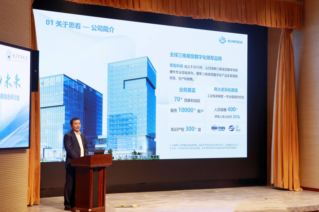 校党委书记沈兴全教授代表学校对企业领导和全体师生的积极参与和大力支持表示感谢。他在致辞中指出,学校始终坚持面向国家重大需求,积极顺应数字经济发展的趋势,以智能行业为导向推动学科建设,已在智能制造、信息技术等领域形成了自身的特色和优势。思看科技作为专注于三维视觉数字化软硬件的高新技术企业,与我校的合作不仅为双方发展注入了新的动力,也预示着广阔的合作前景。