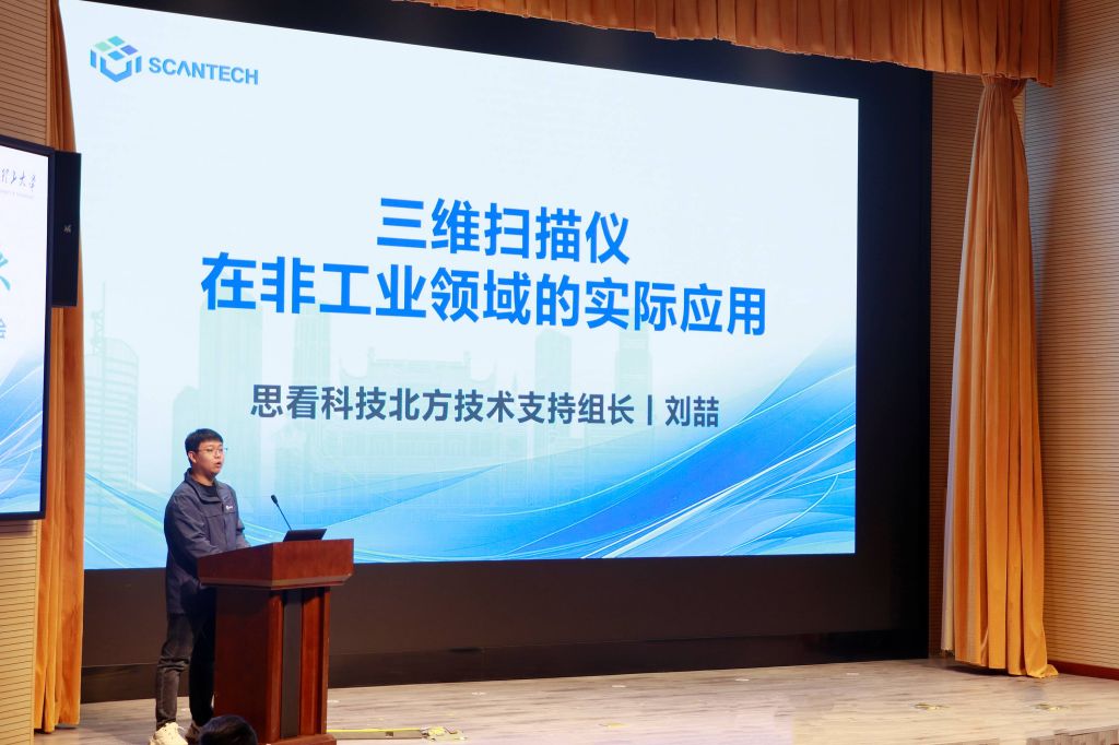 北方区域销售经理王建刚先生展示了三维视觉技术在提升生产效率和质量方面的实际应用案例,技术支持组长刘喆先生分享了三维扫描仪在非工业领域的应用成果。